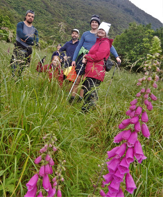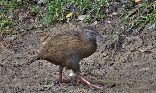 2. Übernachtung auf einem Camp-Side (unbewirtschafteter Camping- oder Biwakplatz mit überdachtem Unterstand) zum Essen machen und sitzen, sowie Toilettenanlagen. Dankbar nehme ich einzelne trockene Kleidungsstücke von den Watch-Mates an, um mich dann kurz nach dem Abendessen in den Schlafsack zurück zu ziehen. Den nächsten Morgen dann wieder in die nassen Socken, die durchweichten Schuhe und in die nasse Hose. Es bleibt den nächsten Tag trocken und so folgte zum Abschluss eine entspannte Wanderung mit leichtem Gepäck auf dem Queen Charlotte Sound Track. Als kostenlose Zugabe zu unseren Aktivitäten gab es herrliche Natur, vielstimmigen Vogelgesang, weite Ausblicke und Begegnungen mit den Bushbewohnern wie z. B. dem Weka. Ein flugunfähiger Vogel ähnlich den Kiwis, aber tagaktiv, deutlich vermehrungsfreudiger und damit weniger gefährdet als die Kiwis.