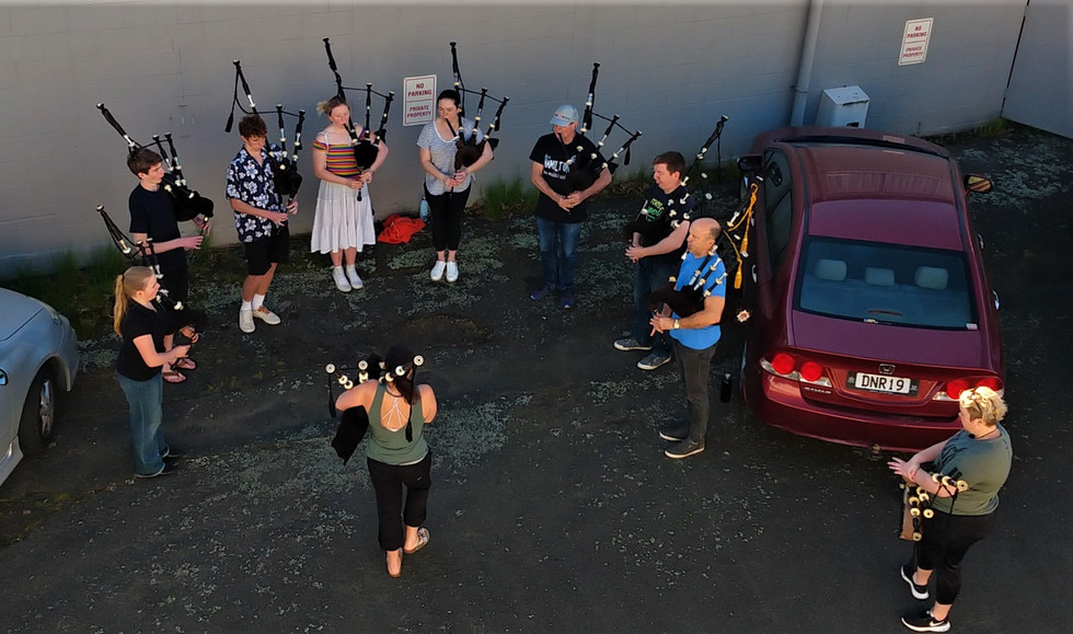 Zu meinem Einzug in Hamilton spielte neben dem Gleiskörper, zwischen Gewerbehalle und stark befahrenen Durchgangsstraße mir zu Ehren eine zehnköpfige Band mit schottischen Sackpfeifen. Wäre doch nicht nötig gewesen! Und die konnten sich sogar mit ihren Kriegsinstrumenten gegen die Gröhlis von der Hauptstraße durchsetzen.