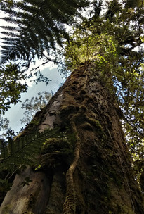 Charmant von den Kiwis aus lauter Sympathie zu Rennstahl die Steinbrocken am Weg in Packtaschenorange zu lackieren. Mental und auch physisch gut präpariert, schnurrt Rennstahl mit der Präzision einer Schweizer Nähmaschine die Serpentinen hoch. (zu Schweizer Lieblingswort siehe den Bericht von Murchison) In den kurzen Abfahrten hatte ich nur das Rauschen des Windes in den Ohren, so war bei den Aufstiegen viel Zeit und Muße den Vögeln zu lauschen. Während die Grey Worbler mit Sangesfreude und in wilder Entschlossenheit ihre Tirrilli Tirrilli Tirrillie durch das Farnlaub schmetterten, saßen die Tontechniker der Tuis immer noch nachdenklich vor ihren Mischpulten, um mit unendlicher Geduld im Feintuning, Tonhöhen, Tonlängen, Pausenzeiten und die Dynamik abzustimmen. Nach kurzweiligen Schussfahrten setzte auch postwendend die nächste Steigungsstrecke an und das Ganze dann auch noch über einen dritten Berg.